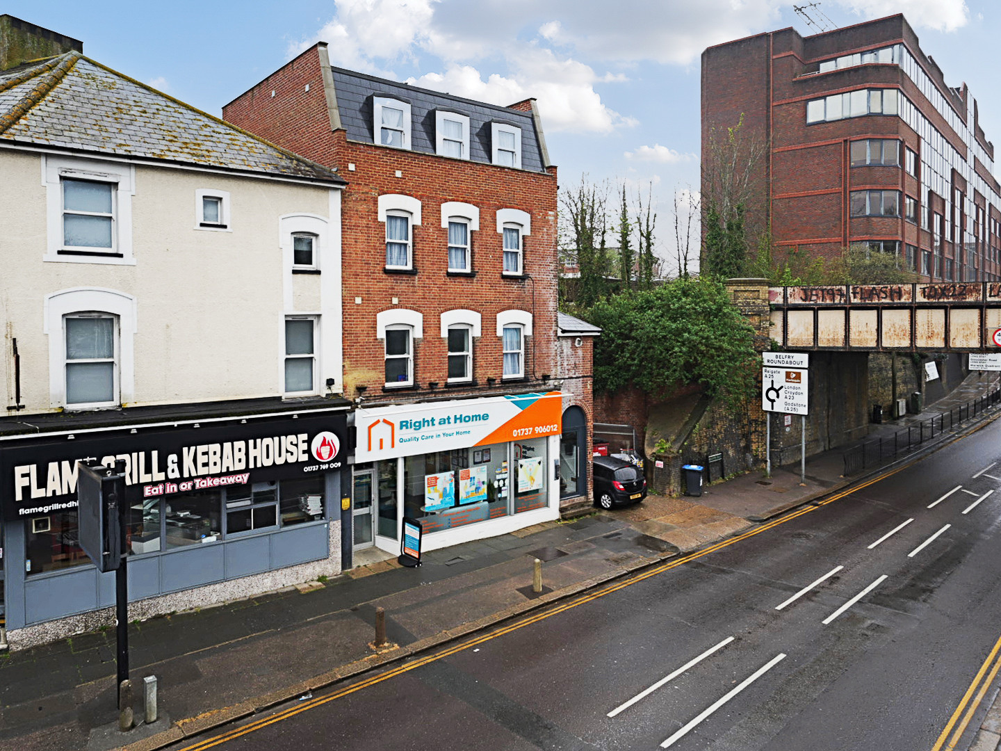 The building comprises a fully income-producing mixed-use freehold, with the ground floor commercial unit let on a Full Repairing & Insuring (FRI) lease to a franchisee of Right at Home – a care agency with over 80 locations nationwide. Above, three two-bedroom flats are let on Assured Shorthold Tenancies (ASTs), generating a total rent across the building of £79,000 per annum.
